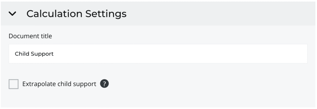 Edit the Document Title to help differentiate this calculation from other calculations in your case dashboard when evaluating different scenarios or entering split custody calculations.